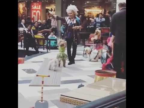 Interactive animal performance with poodles and doves